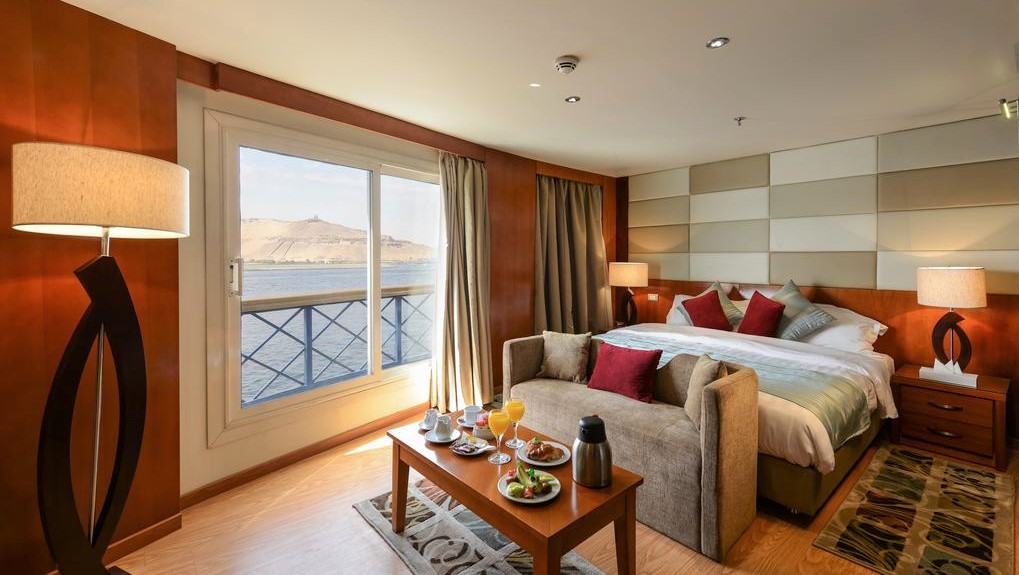 Ein Nilkreuzfahrtschiff ist ein schwimmendes Hotel das Sie auf die angenehmste Art und Weise zu den atemberaubenden Tempelanlagen der alten Ägypter führt. Alle Schiffe verfügen über Restaurants, einen Pool mit Sonnendeck, Boutiquen/Shops und Wäscheservice sowie je nach Kategorie über zusätzliche Serviceleistungen wie Internet, Fitnessraum und viele Annehmlichkeiten mehr die eine Kreuzfahrt auf dem Nil zu einem unvergesslichen Erlebnis machen. Die Kabinen bieten Doppelbetten oder Einzelbetten mit wunderbaren Ausblick aus Panorama-oder Schiebefensternfenstern, einige Luxusschiffe verfügen auch über einen Balkon oder eine Terrasse. In den Kabinen finden Sie eine regulierbare Klimanlage, Telefon, SAT TV, Minibar und ein separates Badezimmer/WC. Die durchschnittliche Größe einer Standardkabine ist 20m2, Suiten sind ca. 35m2 groß.